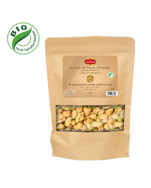 Bouton de fleur d'oranger séchée BIO / / (50 g) Certifiée BIO Relaxante et favorise le sommeil. Digestif en tisane 32,50 Dhs