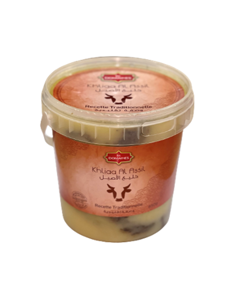 Le khlii Traditionnel LES DOMAINES est une véritable gourmandise, fabriqué avec soin à base de notre viande de bœuf sans soja, marinée dans des épices naturelles et séchée à l'air frais. Son mariage parfait entre tendresse, arômes riches et notes épicées en fait un incontournable de la cuisine marocaine.