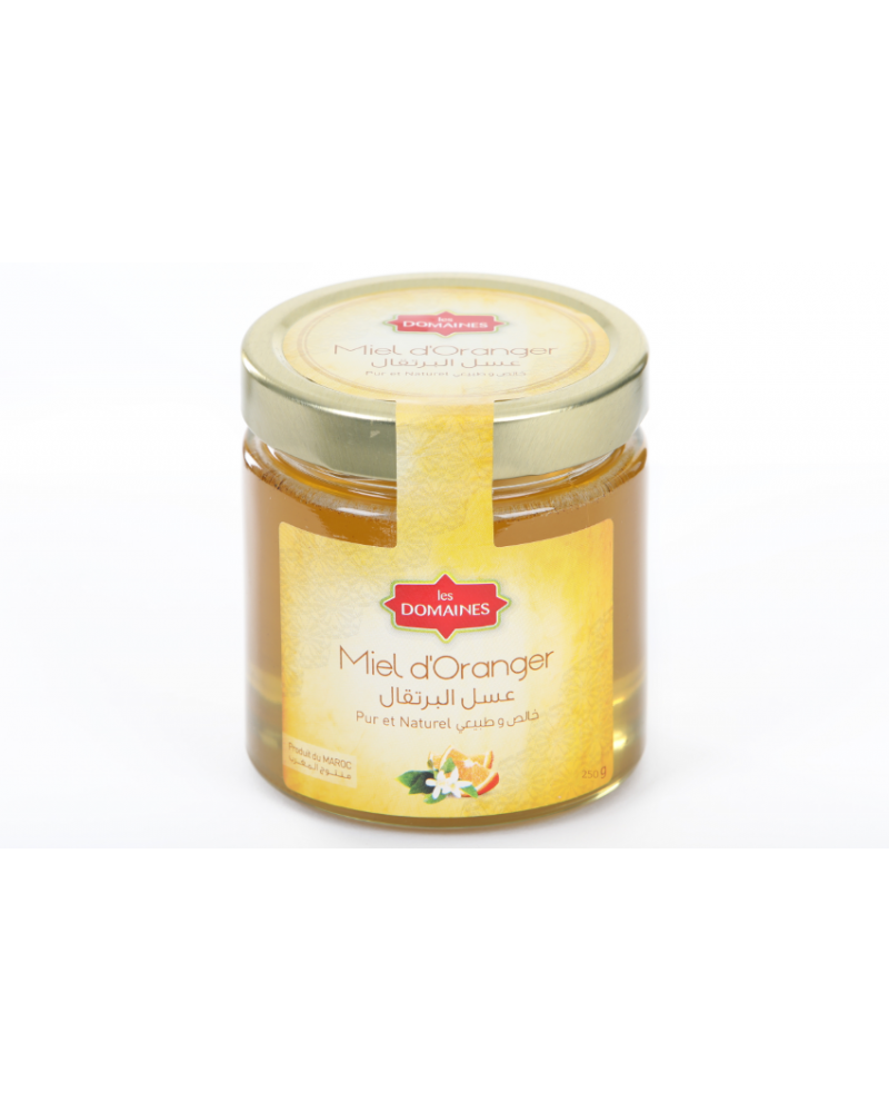 Notre miel d'oranger LES DOMAINES 100% pur et naturel est issu de nos propres ruches d'abeilles écoresponsables. Grâce à ses propriétés thérapeutiques et antispasmodiques naturelles, notre miel d'oranger permet de calmer les migraines, les insomnies, les anxiétés et le stress. Savourez-le dans vos recettes culinaires préférées tout en jouissant de ses bienfaits naturels. Il est conseillé de le conserver dans un endroit sec et une température ambiante.