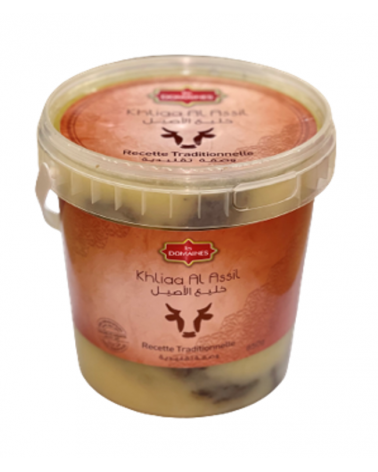 Le khlii Traditionnel LES DOMAINES est une véritable gourmandise, fabriqué avec soin à base de notre viande de bœuf sans soja, marinée dans des épices naturelles et séchée à l'air frais. Son mariage parfait entre tendresse, arômes riches et notes épicées en fait un incontournable de la cuisine marocaine.